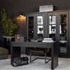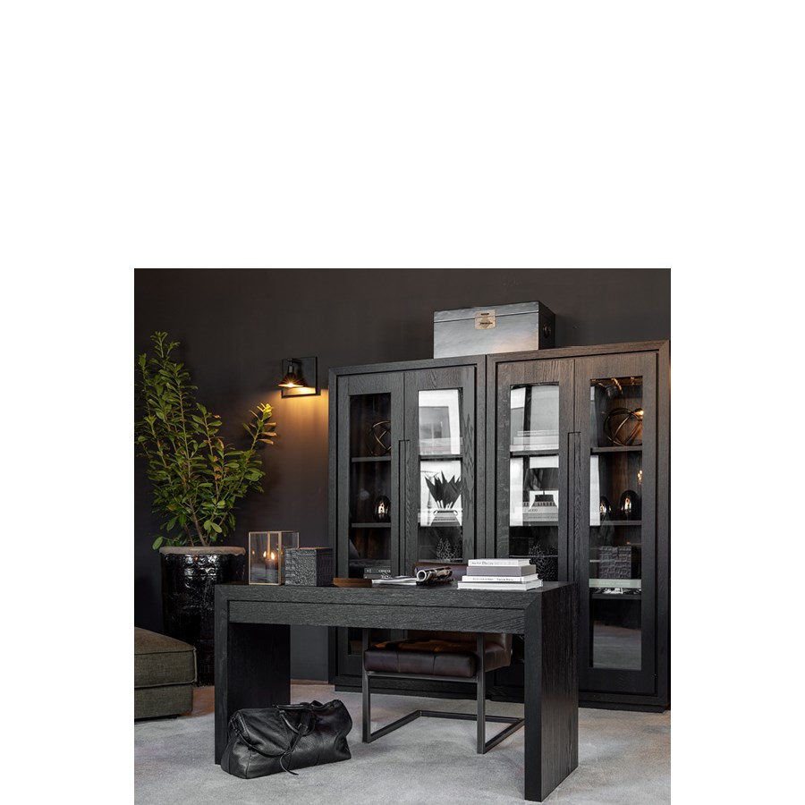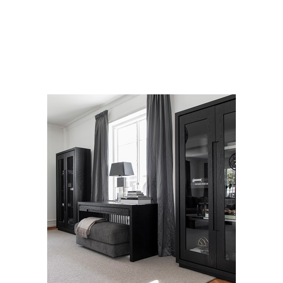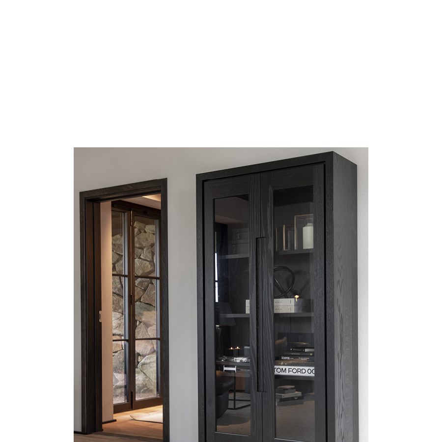 Hunter vitrinskåp i ekfanér med tre fasta hyllplan som erbjuder gott om utrymme.