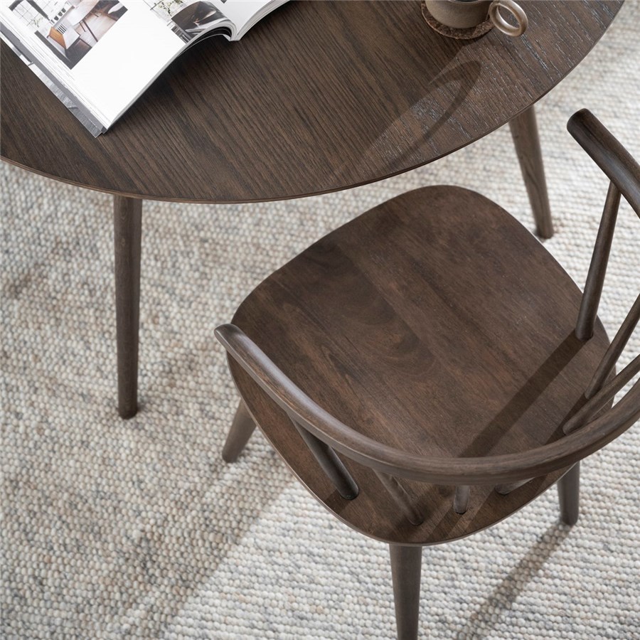 Carmen är en pinnstol i trä med elegant form. Ryggpinnarna som strålar ut från den massiva sitsen ger Carmen stabilitet och pondus. En design som passar flera typer av bord och miljöer.