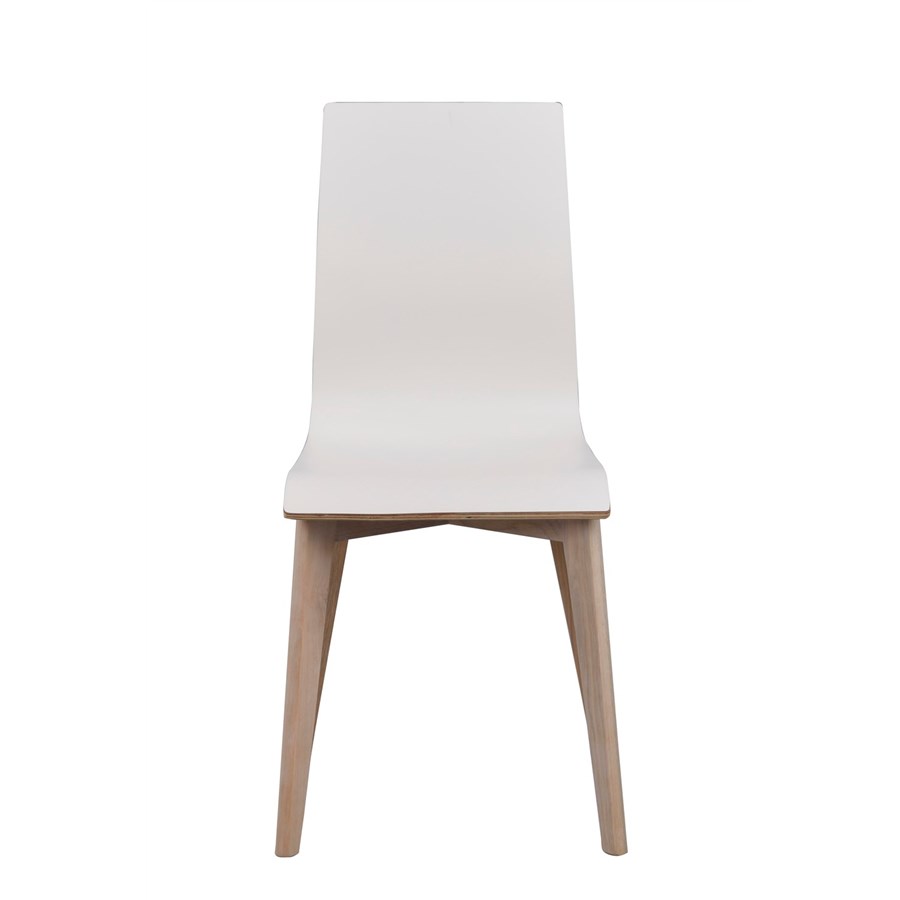 Nätt, modern stol som passar till många stilar av matbord. Sits i laminat och träben.