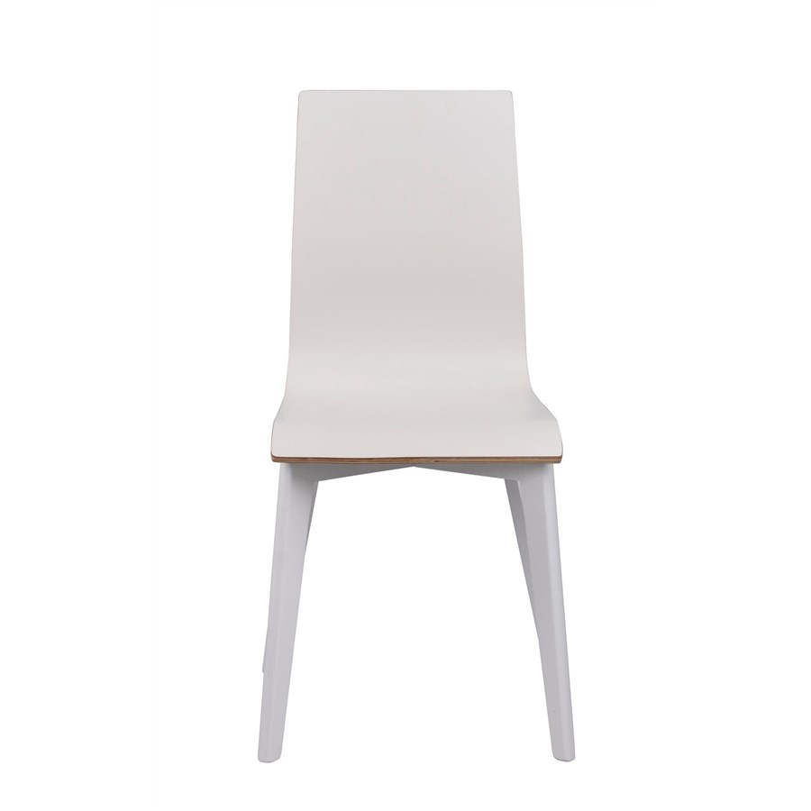 Nätt, modern stol som passar till många stilar av matbord. Sits i laminat och träben.