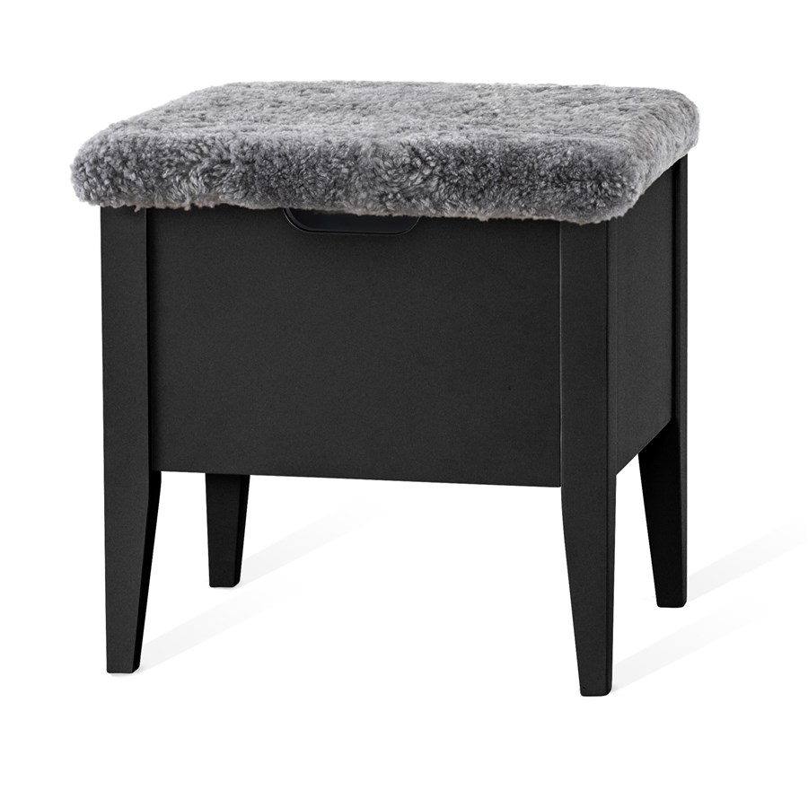 Hallbänk med lock. Välj klädsel - ulltyg, grå fårskinnsimitation eller äkta fårskinn. Frånpris.