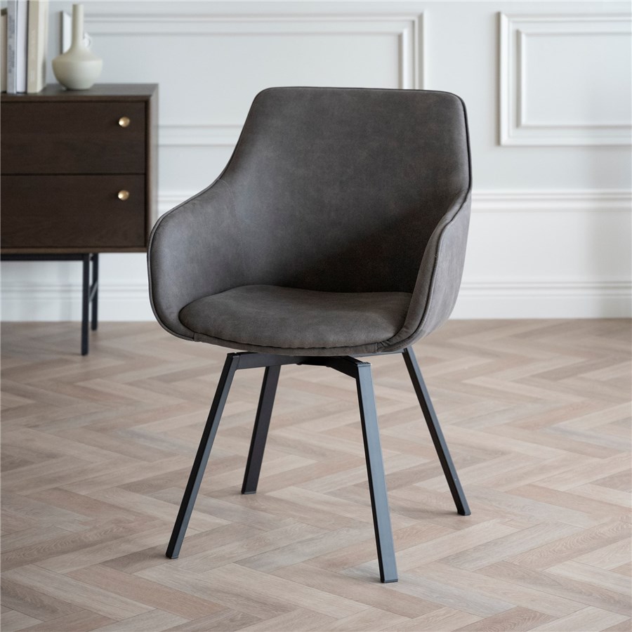 Alison snurrstol i tyg med ben i pulverlackad svart metall.