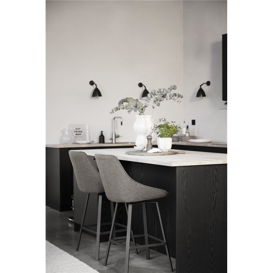 Alison barstol med snurr i tyg med ben i pulverlackad svart metall.