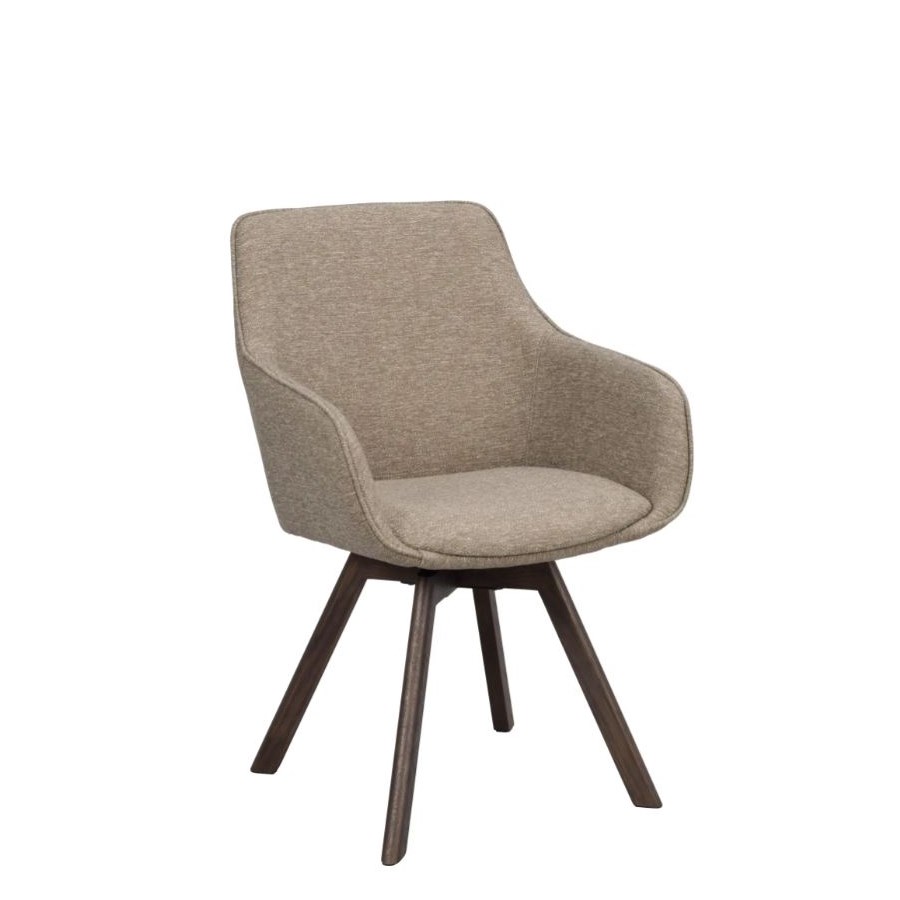Alison snurrstol i tyg med träunderrede i brunlackad ek.