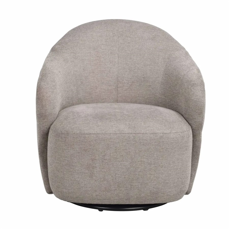 Chapeltown loungefåtölj med snurrfunktion är en stoppad fåtölj i beige textil med mjuka former, dekorativa textilsömmar och bekväma armstöd.