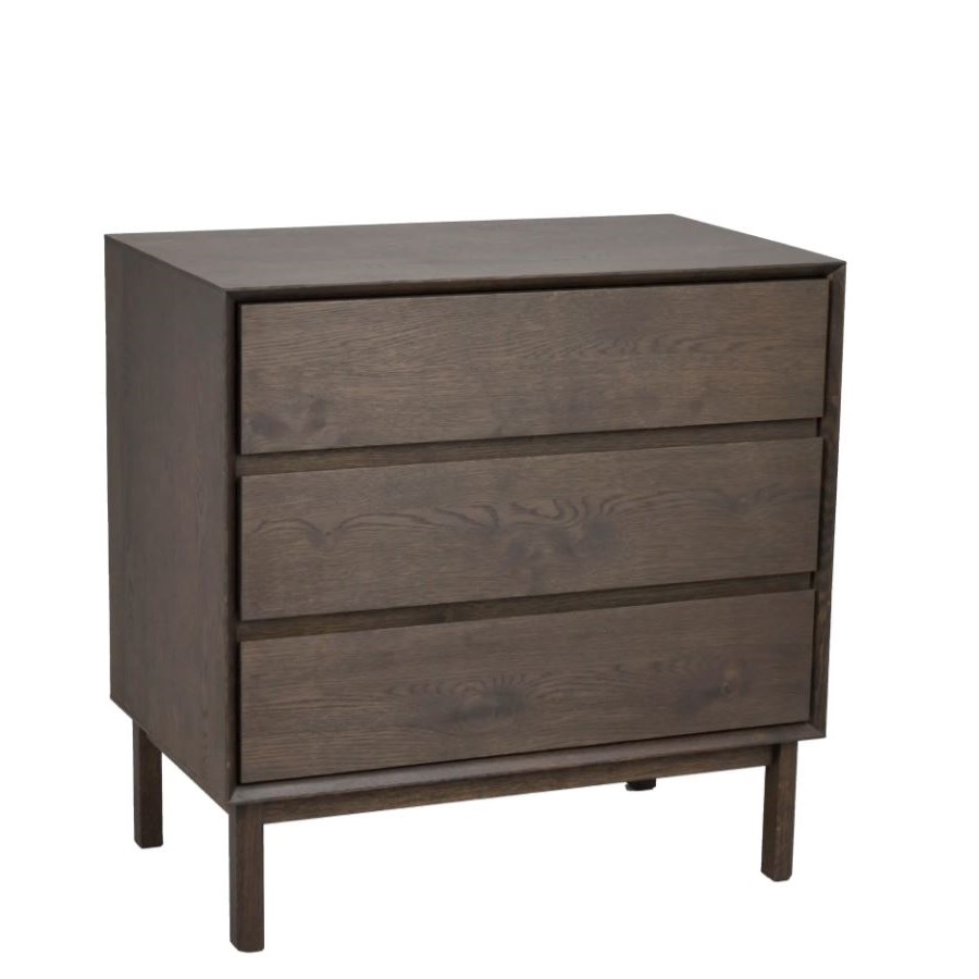 Byrån Mackay i brun vildek med tre lådor passar lika bra i hallen som i sovrummet. Mackay finns i tre olika storlekar i brun eller oljad vildek.