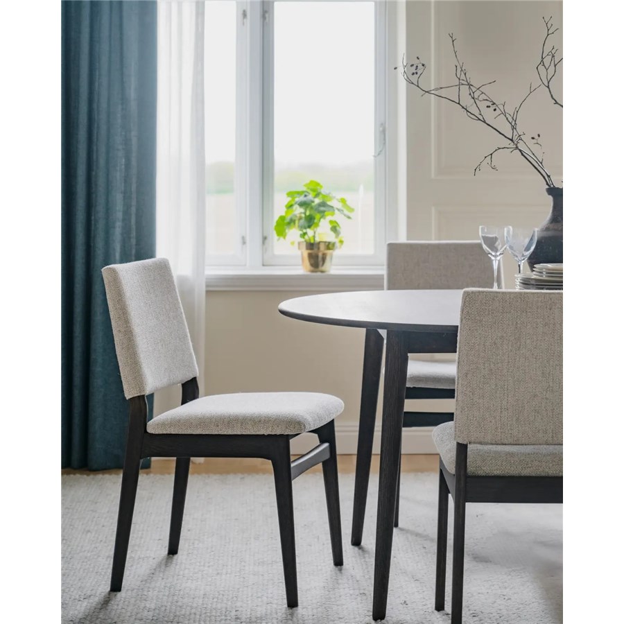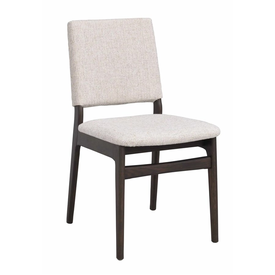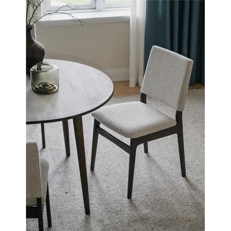 Medford stol i brun ek och ljusbeige textil är en nätt stol med bra komfort.