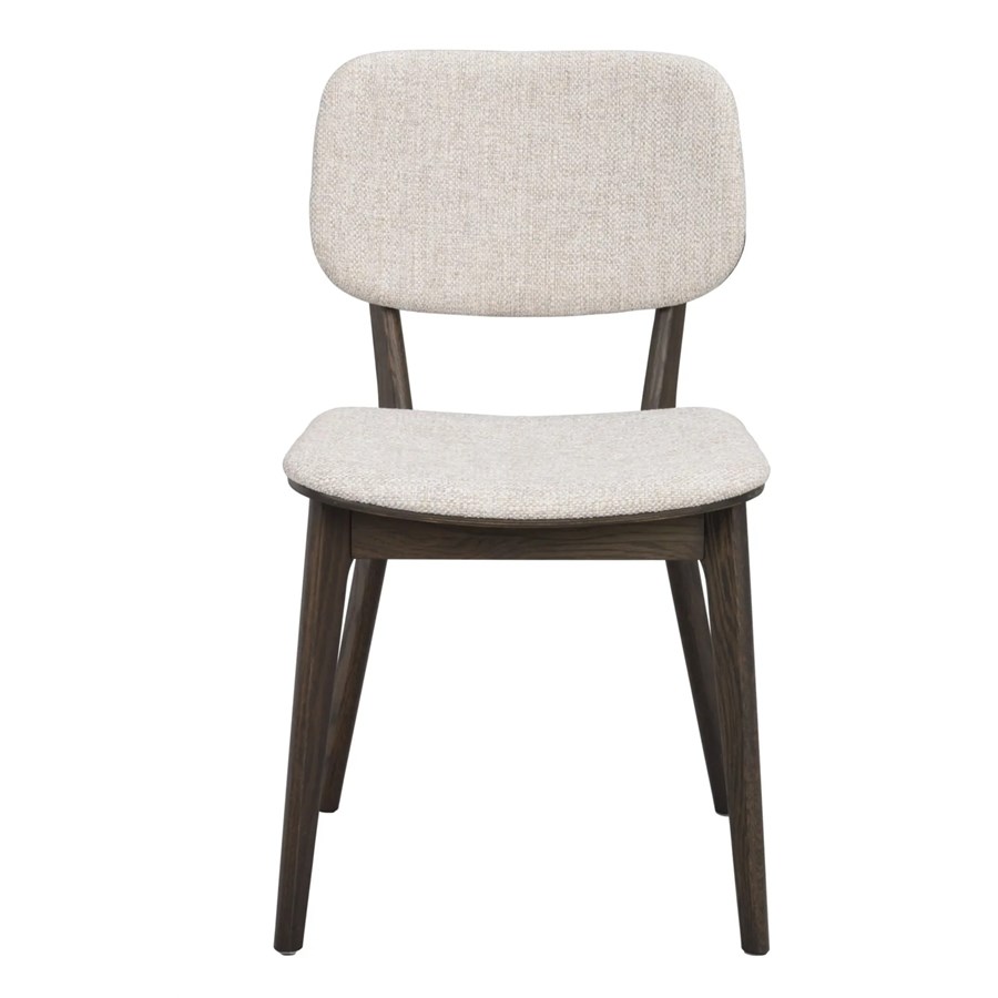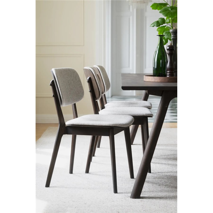 Barrett stol i brun ek och med tygklädd sits och rygg med mjuk stoppning ger en mjuk och stödjande känsla.