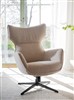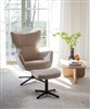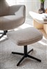 Jenkins fåtölj med fotpall i en tidlös beige textil. Med sin mjuka form, höga rygg, snurr- och gungfunktion så bjuder den på fantastisk sittkomfort.