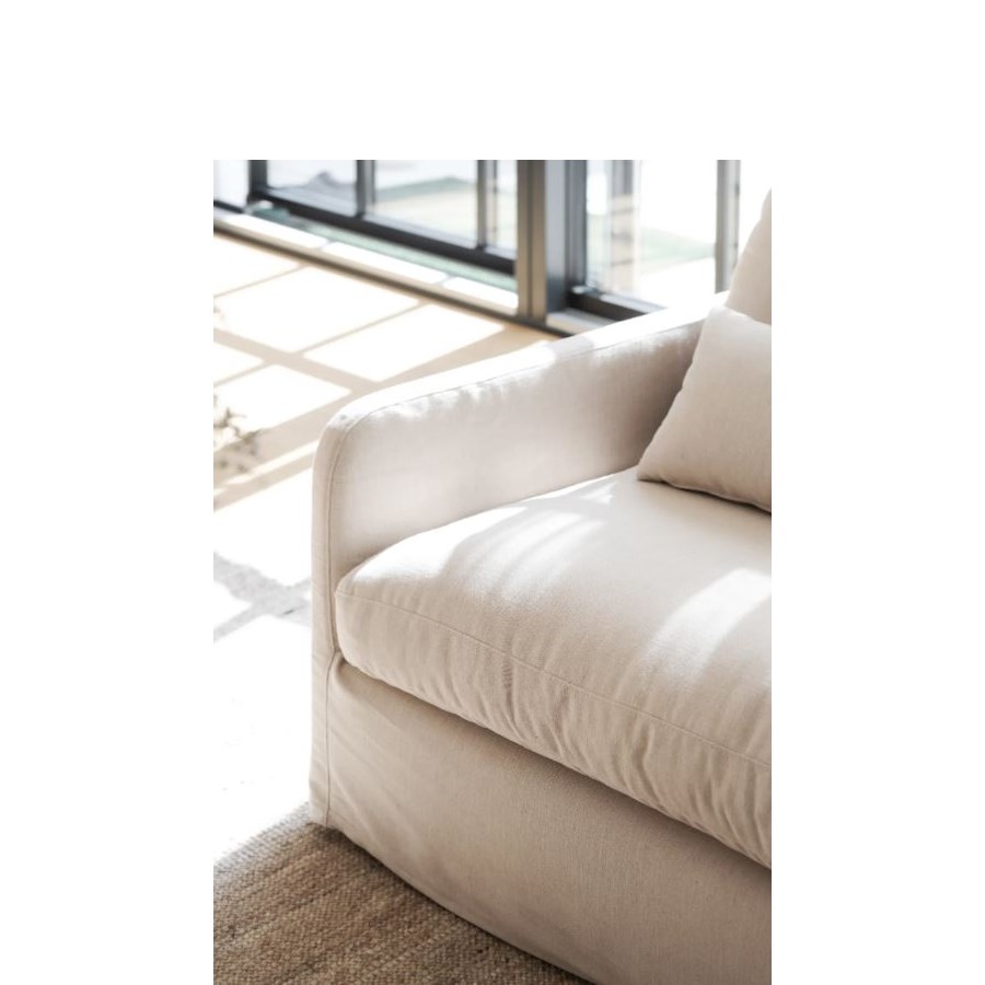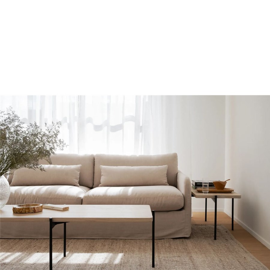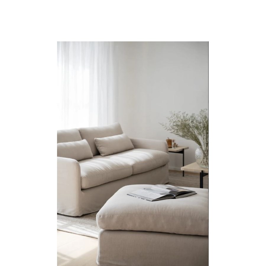 Soffan Peyton i elegant ljusbeige linne-liknande tyg i färg Ursula beige.