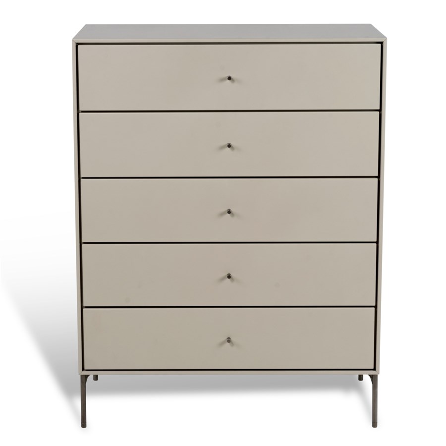 Volt byrå i beige lack med massiva rostfria ben med ställbar fot.