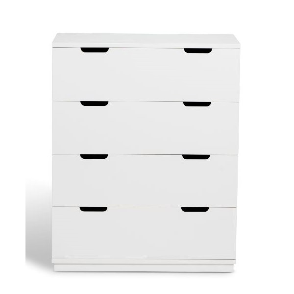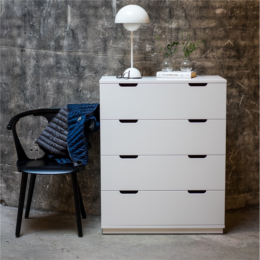 Byrå Aoko med urfrästa handtag. Finns i vitlack och beige lack.