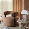 En modern loungestol med runda former och öppen rygg som bjuder in till avkopplande stunder. Finns i flera olika färger.
