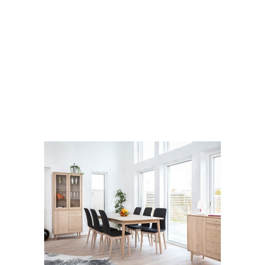 Stol med helklätt skal i tyg Nord beige eller grå. Underrede i massiv vitoljad ek. Svarvade ben.