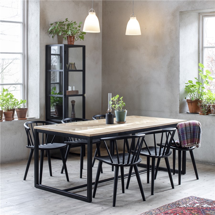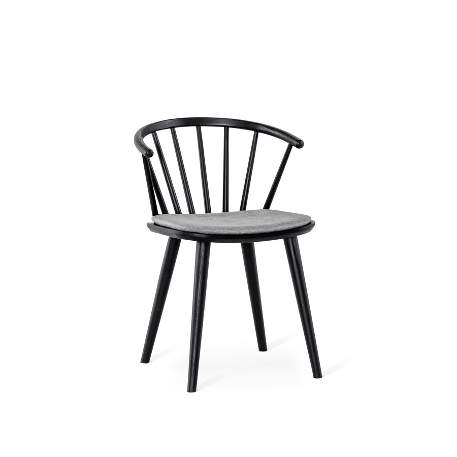 Stol i massiv ask i vitlack eller svartlack inkl löstagbar dyna i grått tyg.