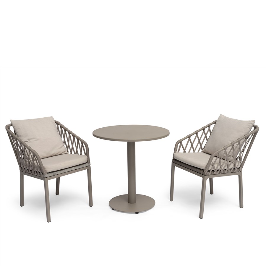 Ett nätt cafébord som kan kombineras med ett flertal olika stolar. Tillverkat i sandfärgat pulverlackat stål.