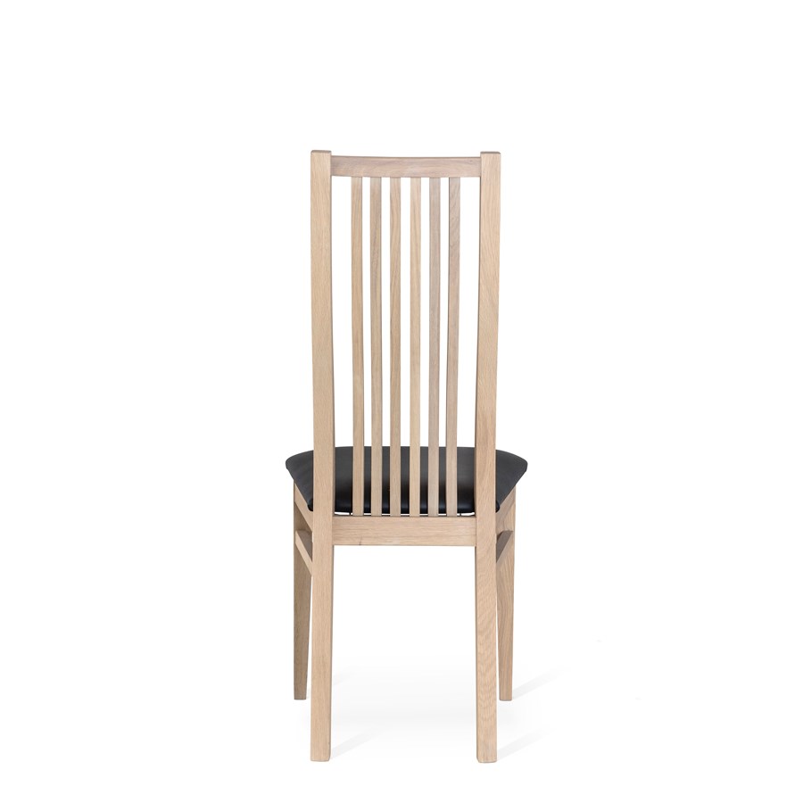 Stol i massiv oljad ek. Sits klädd i svart läder.