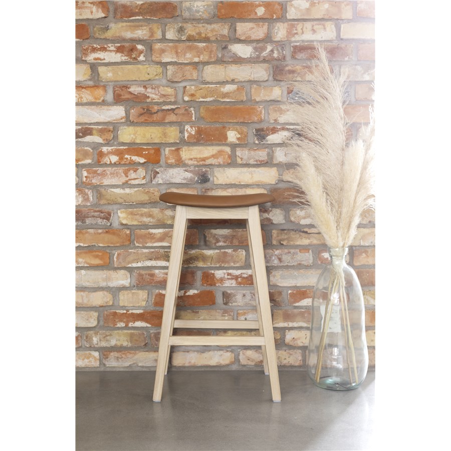 Kyoto barpall i massiv vitoljad ek med sits i cognac läder.