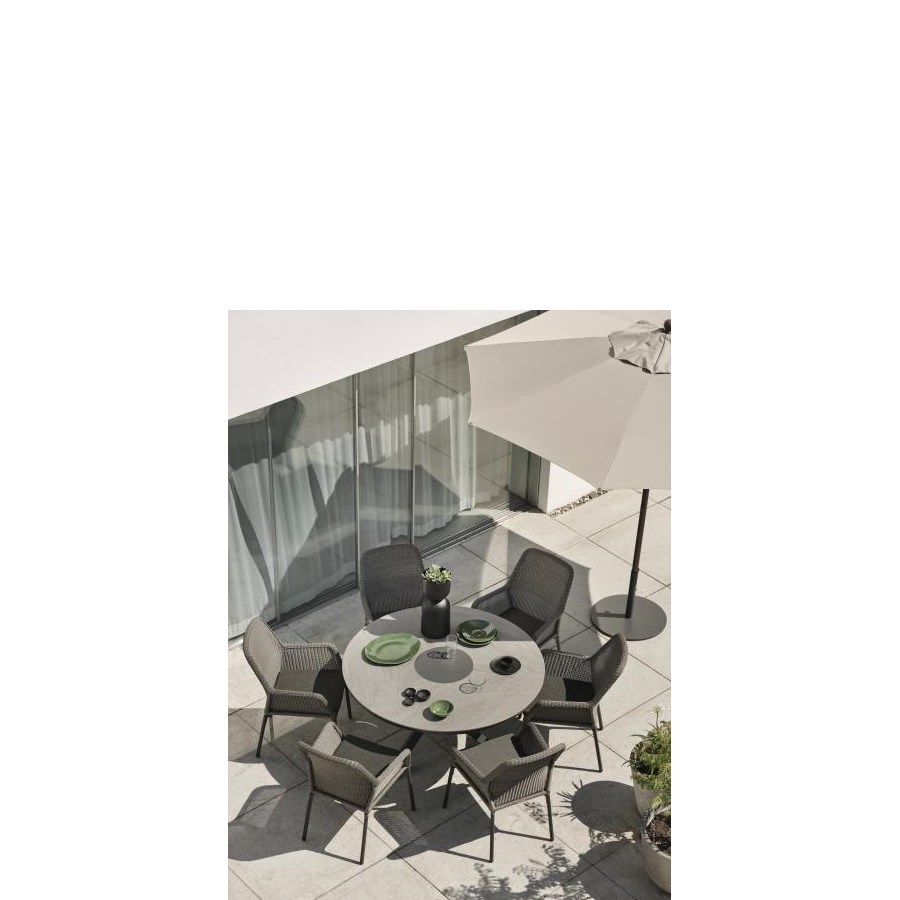 Brage parasollfot i pulverlackad stål. 34 kg med dubbla skruvfästen för extra stadga.