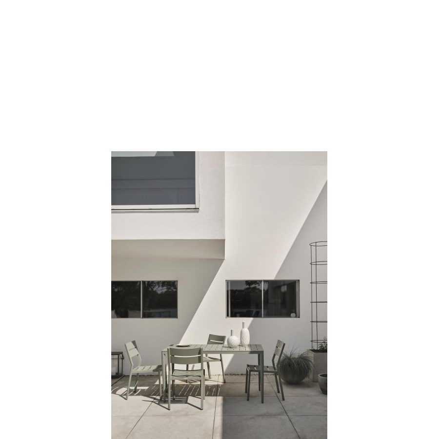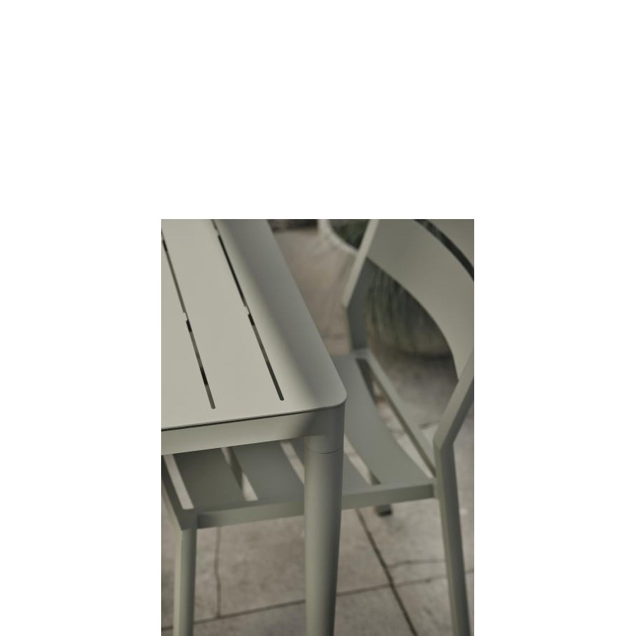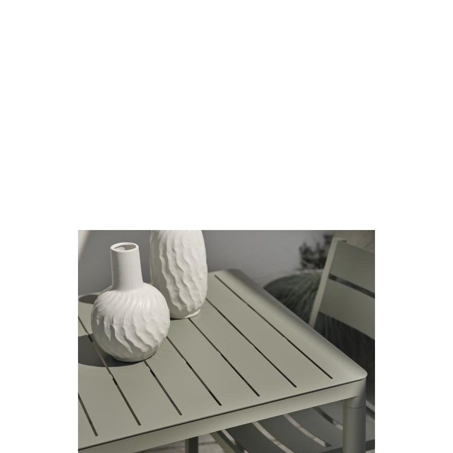 Aluminiumbord Bigby från Brafab. Finns i grönt, ljusgrått och gult. Med inbyggda skruvfötter. Finns även i olika storlekar.