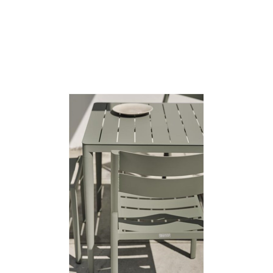 Aluminiumbord Bigby från Brafab. Finns i grönt, ljusgrått och gult. Med inbyggda skruvfötter. Finns även i olika storlekar.