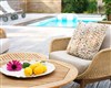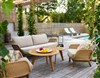 Lily är en generös loungeserie med extra djup sits och fylliga dynor för avslappnad lyx. En ram av twistad konstrotting och ben i teak.