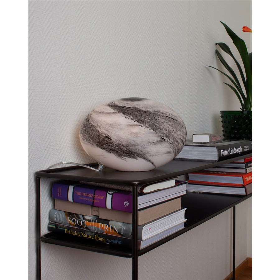 Mira bordslampa helt i glas finns i två olika färger: vitsvart och naturfärgad. Den är munblåst vilket gör att varje lampa är unik.