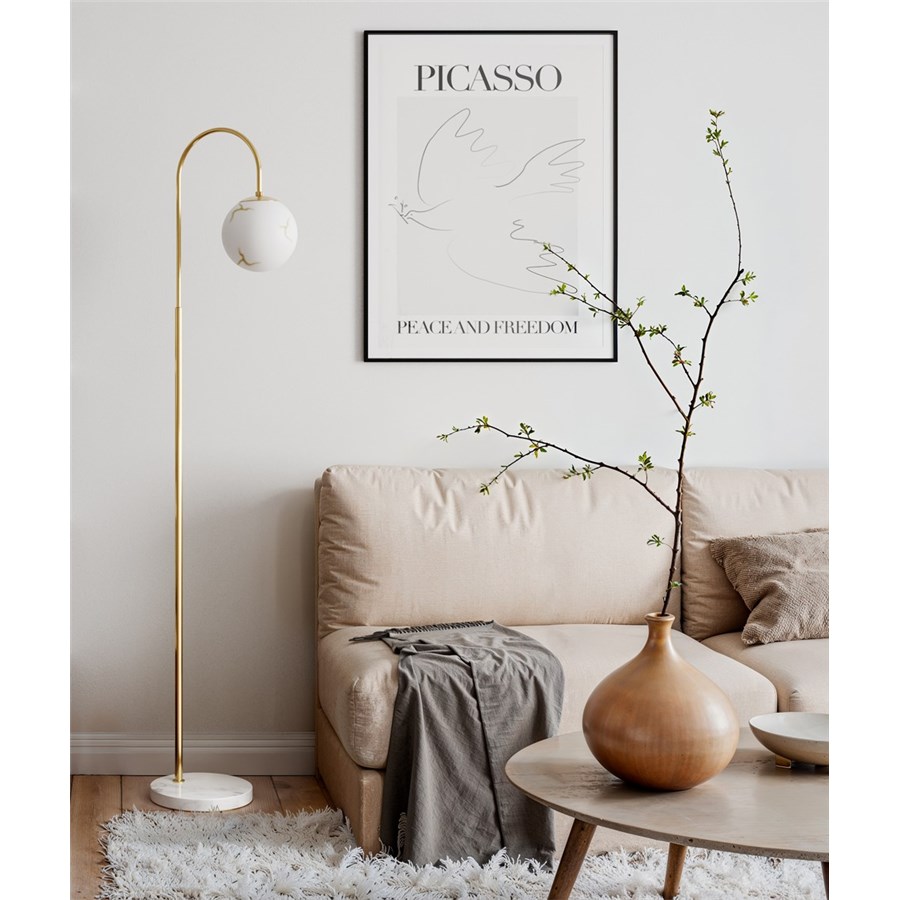 Golvlampa Bellagio med marmorerat glas och mässingdetaljer ger en exklusiv och tidlös känsla till ditt hem.