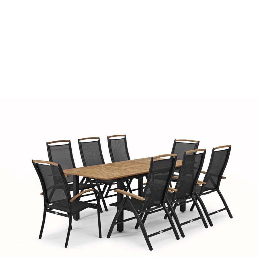 Nydala positionsstol i aluminium och teak. Finns även i vitt och med tillhörande bord i två olika storlekar.