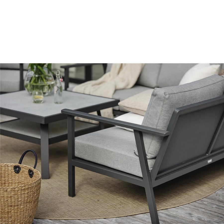 Samvaro-serien har utökats med många nya lounge-delar. Kombinera ihop din egen sköna loungesoffa. Denna avslutsdel har bekväma dynor i vattenavvisande olefintyg. Detta avslut finns i tre färgkombinationer.