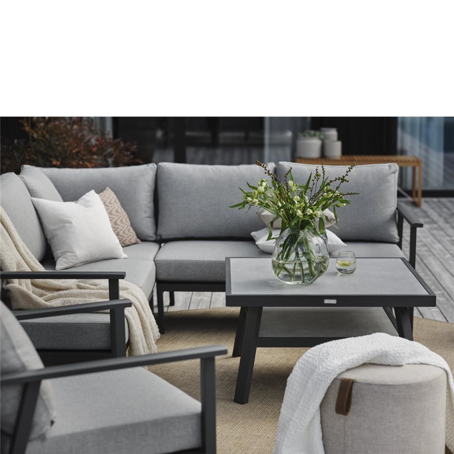 Samvaro-serien har utökats med många nya lounge-delar. Kombinera ihop din egen sköna loungesoffa. Denna hörndel har en lite lägre höjd och har bekväma dynor i vattenavvisande olefintyg. Detta hörn finns i två färgkombinationer.