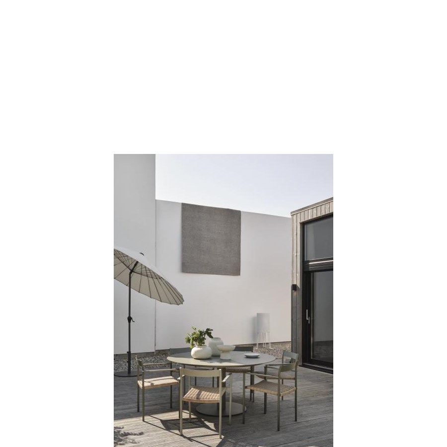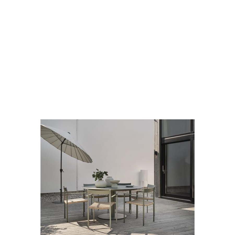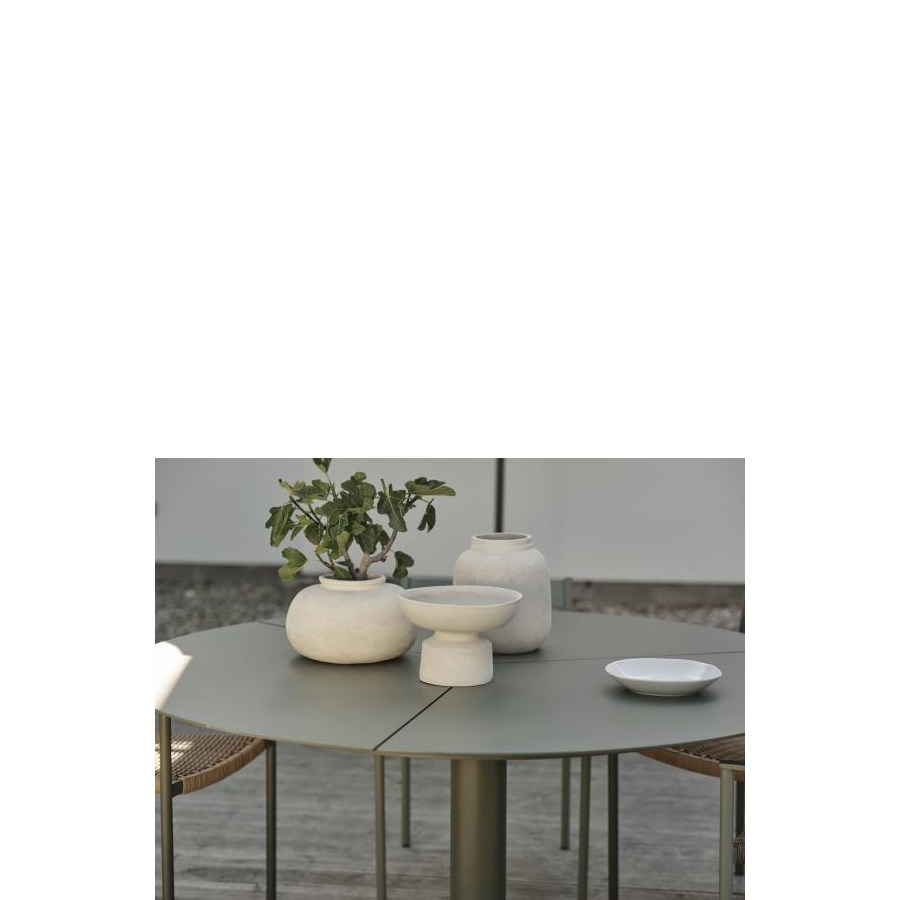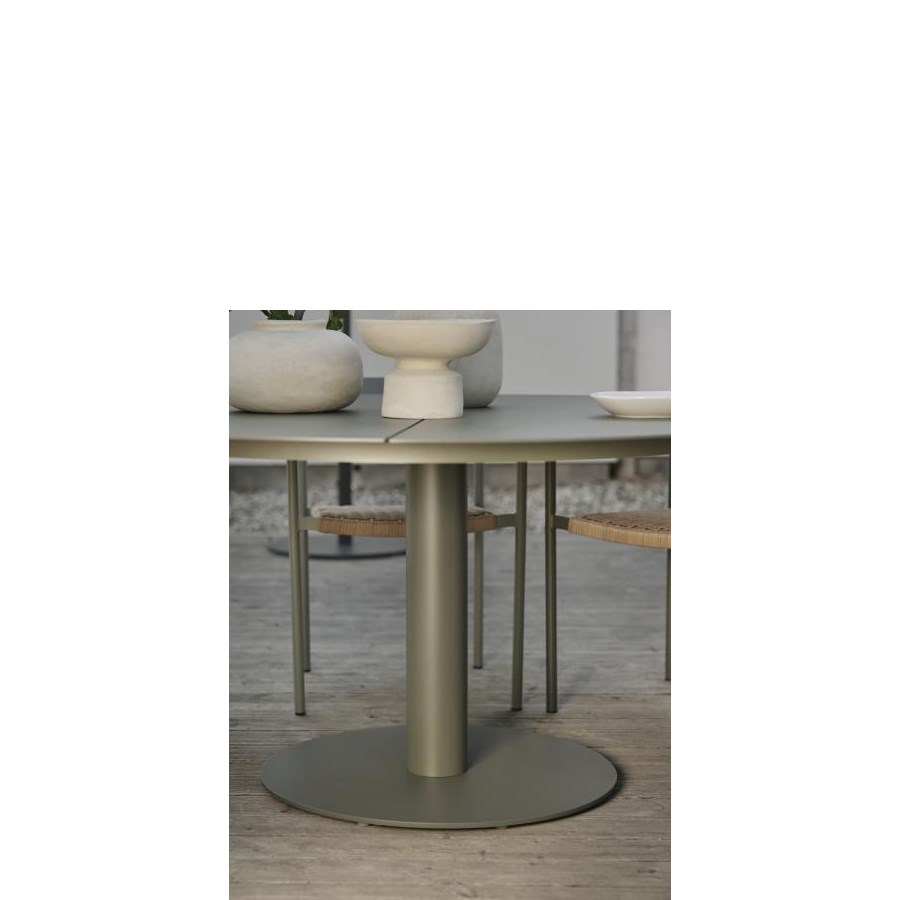 Stilfulla matbordet Peace i aluminium från Brafab. Hela 150 cm i diameter så att man får plats många runt middagsbordet. Pelaren i mitten gör att man också får plats med benen utan att behöva trängas. Bordet är även utrustat med justerbara fötter. Finns i tre färger.