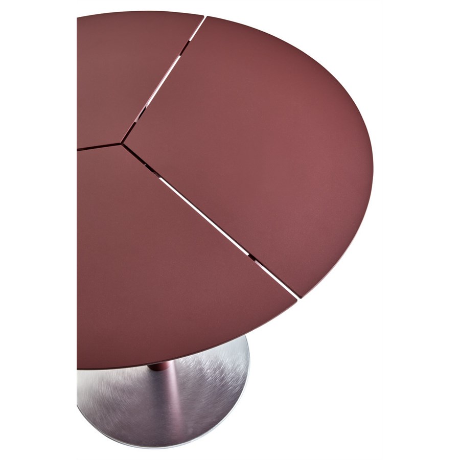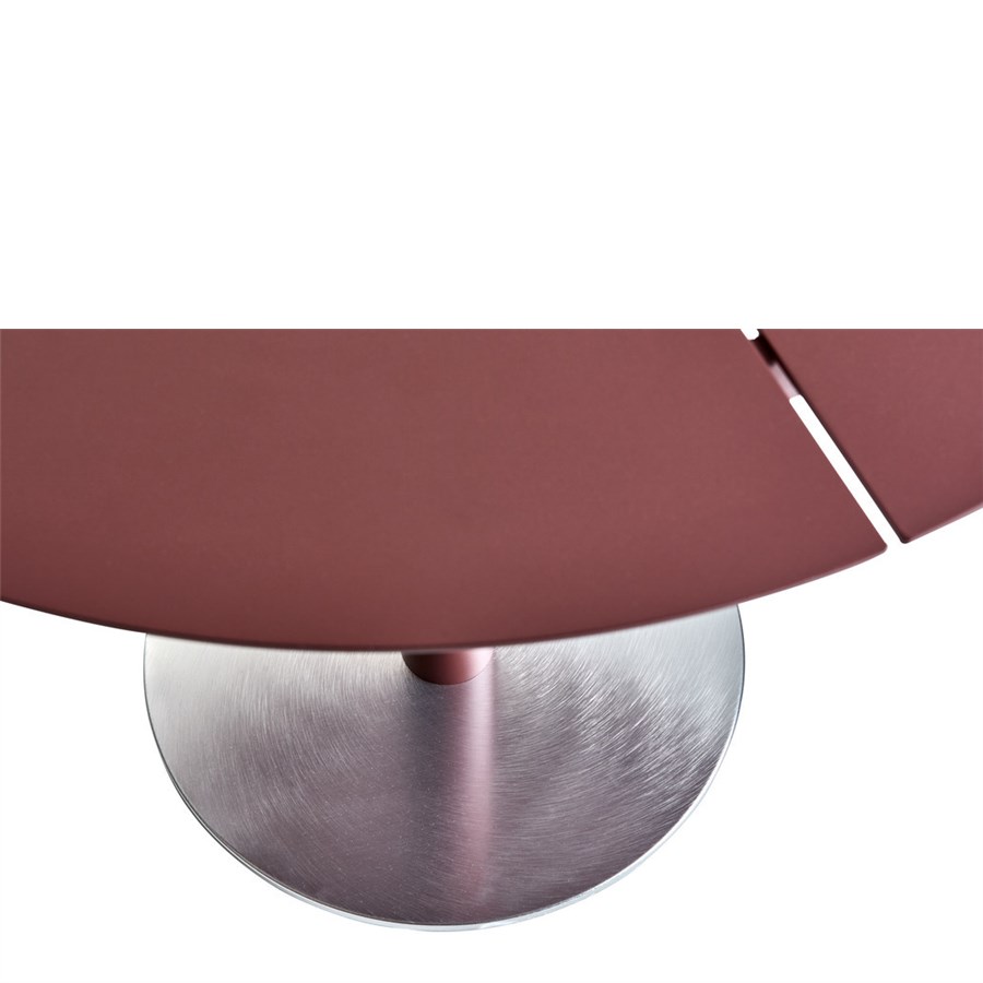 Ett cafébord i aluminium 80 cm i diameter med en basplatta med borstad aluminiumyta för att tåla slitage från skor. Finns även i andra färger och storlekar.