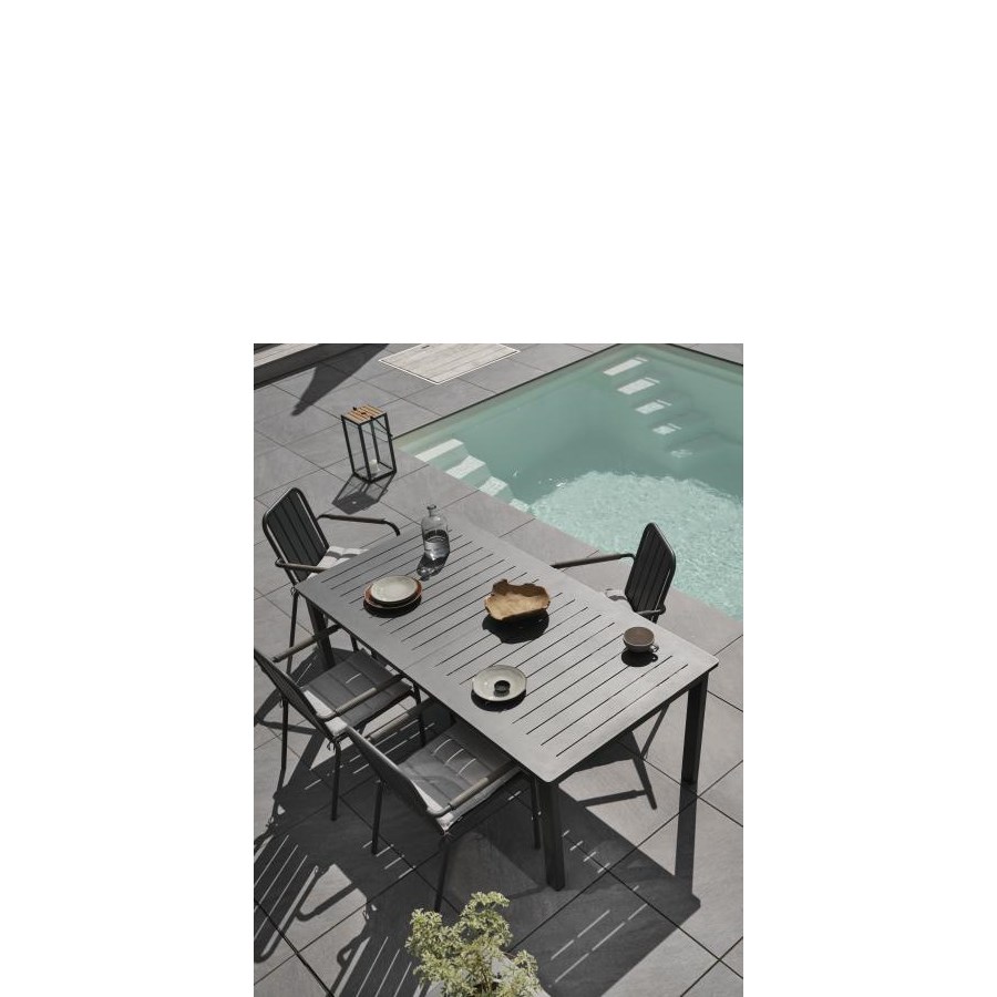 Utdragsbord Lomma i aluminium. Finns i vitt, svart och beige. Det är 194 cm ihopfällt och blir 312 cm utfällt med sin butterfly-funktion på hela 120 cm. Detta är ett snyggt och mycket tåligt bord som passar både till vardag och till fest för många.