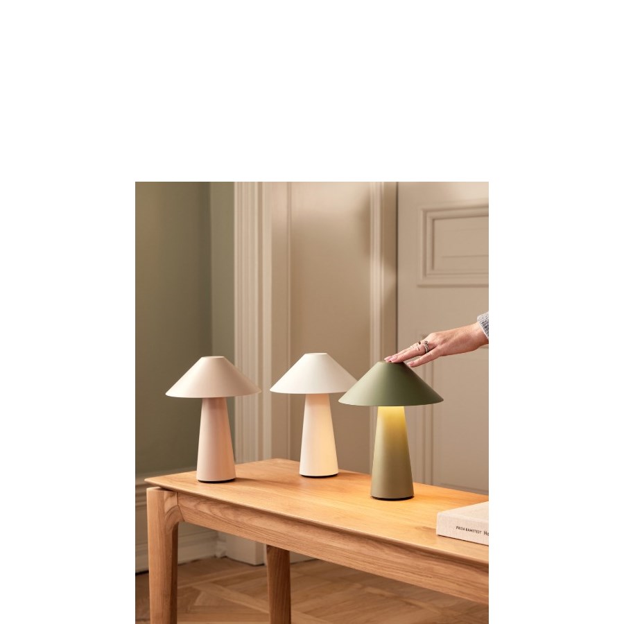 Den portabla bordslampan Cannes IP44 kan steglöst regleras med hjälp av touch-funktionen på toppen. Lampan laddas med hjälp av den medföljande USB C-kabeln. Batteritid 8 timmar på 100% ljusstyrka. Cannes IP44 finns i flera olika färger.