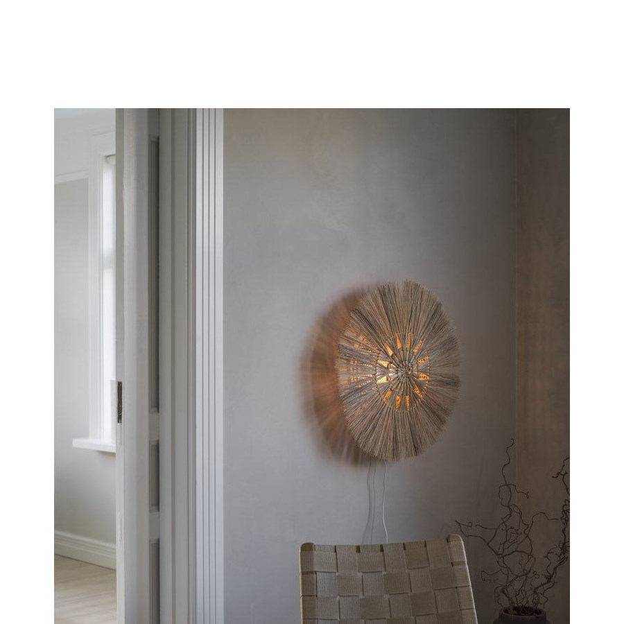 Vägglampa Amara i naturfiber. En dekorativ väggbonad som även ger stämningsljus.