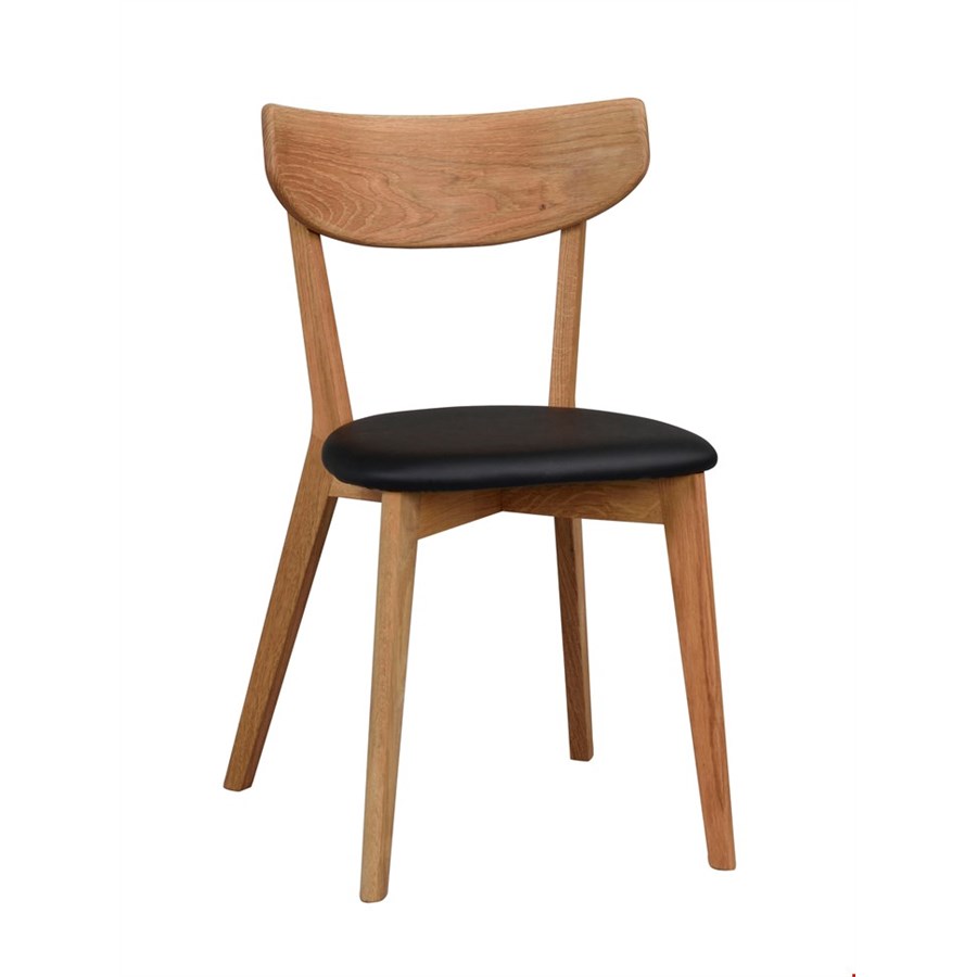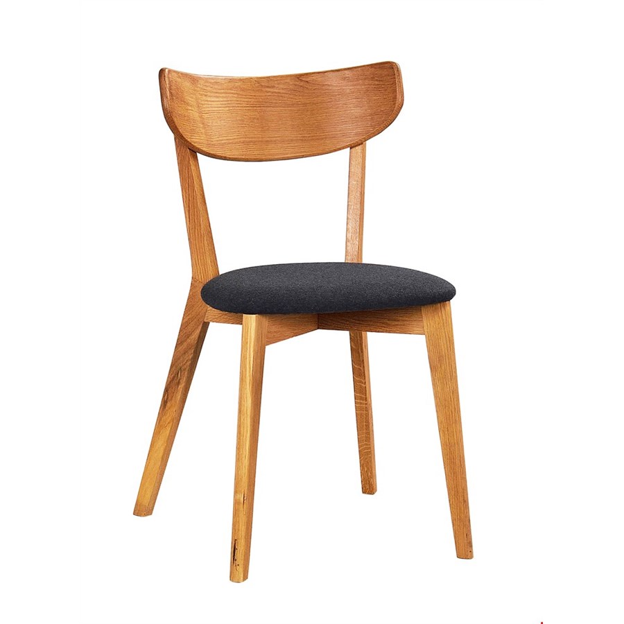 Klassiskt modern. En stol i fin formtradition med ryggstöd i trä och klädd sits.