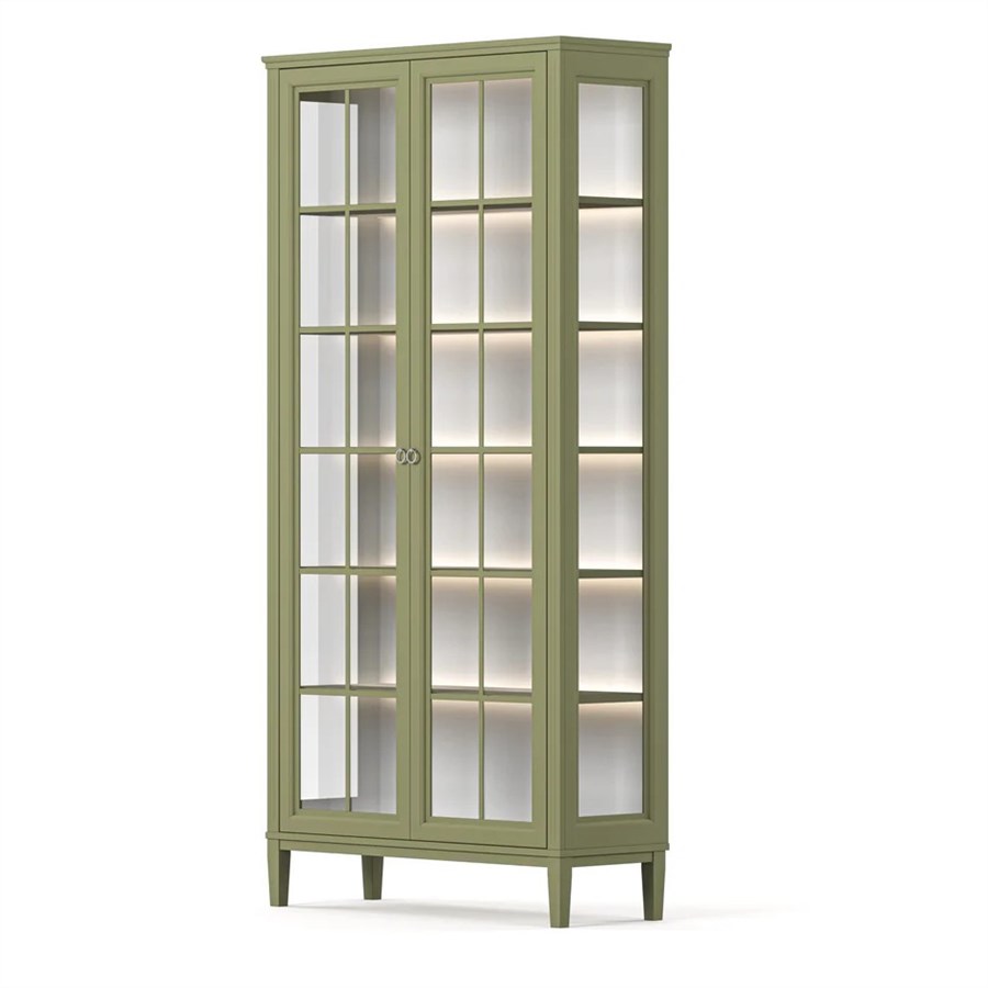Integrerad ledbelysning sitter diskret placerad över varje hyllplan.