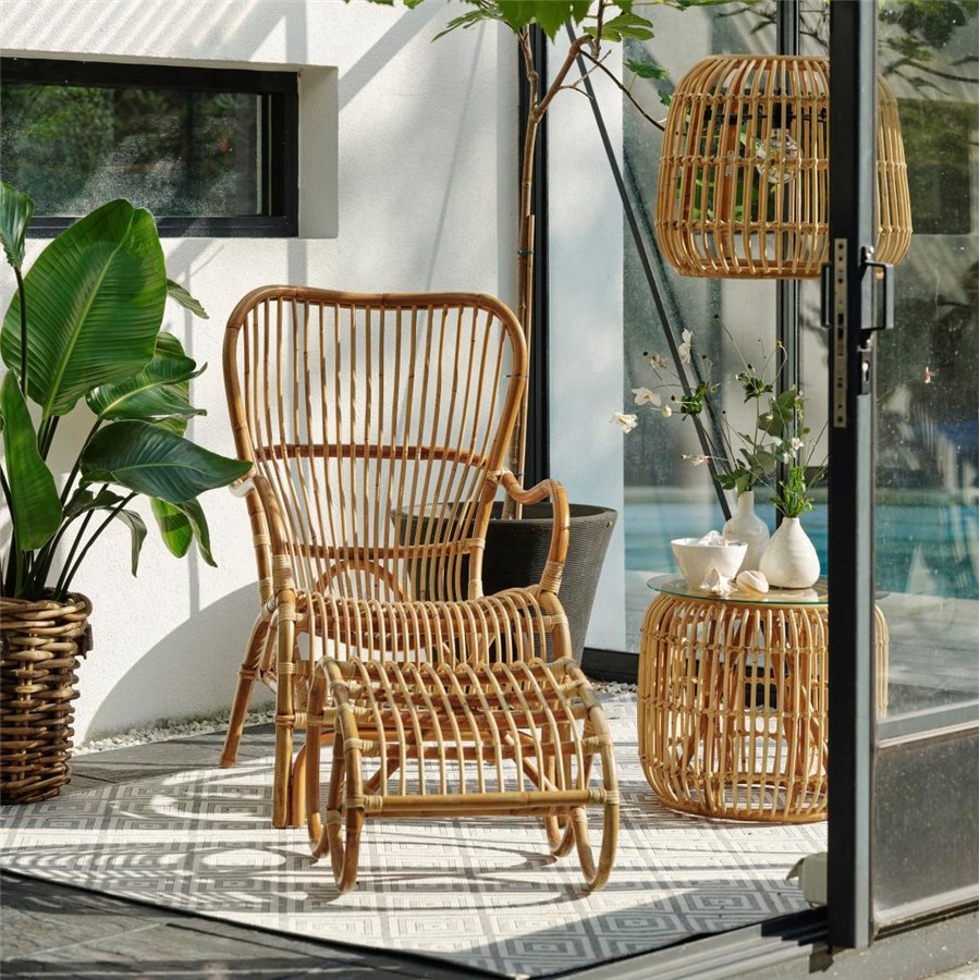 Njut av din Valldafåtölj med denna Vallda pall i flätad naturrotting. Möbler i rotting bör placeras under tak.