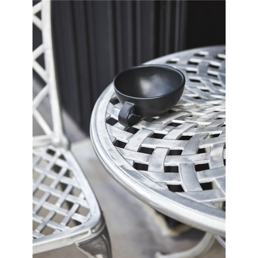 Ett cafébord i aluminium 70 cm i diameter. Finns även i andra färger och tillhörande stolar till.