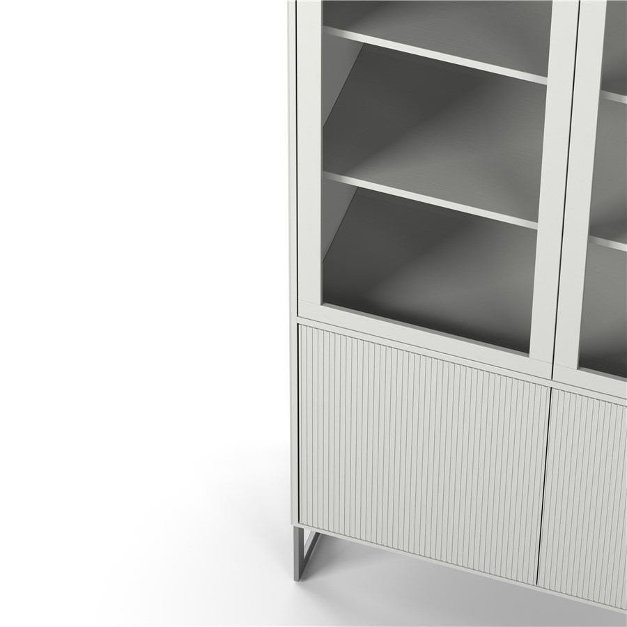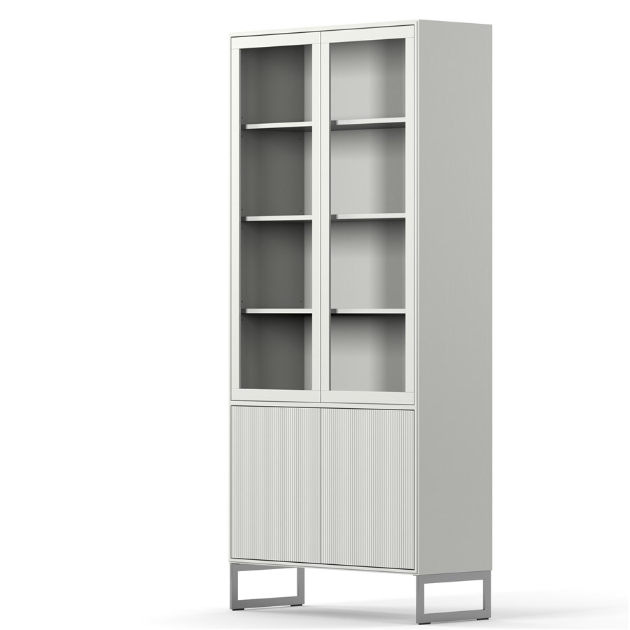 Vitrinskåp Line med två vitrindörrar av glas och två trädörrar. Välj ben i krom eller svart alternativt sockel. Pris inkl benställning.
