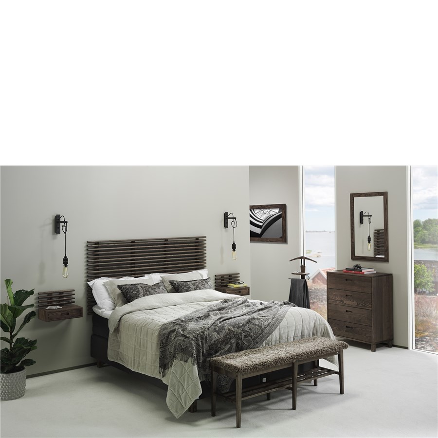 Zana sänggavel har ribbor med en mjukt rundad framsida. Finns i massiv ask i flera färger och i vitlackad björk i tre olika längder för att passa din säng.