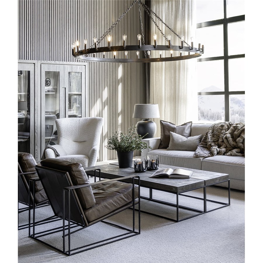 Rund taklampa av metall. Finns även i storlek Ø105 cm.