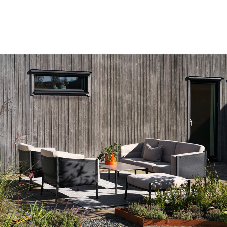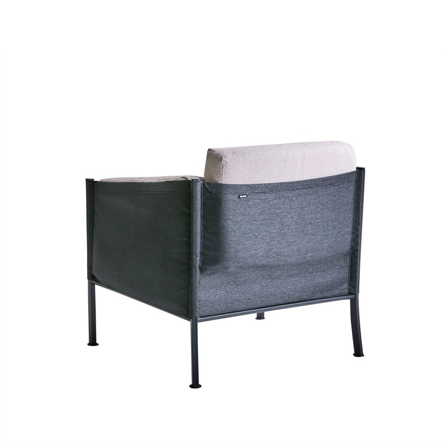 En bekväm och inbjudande fåtölj med rostfri stålram och extra mjuka dynor i super-soft skum.