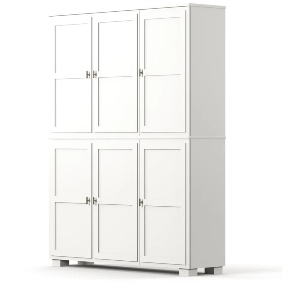 Camden är en ny serie från Englesson. Här ett vitrinskåp med 6 trädörrar som erbjuder utrymmen med både hyllor och lådor.