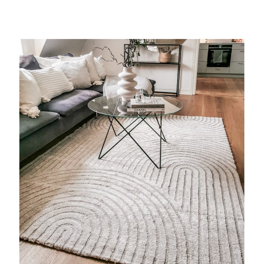 Arcos wiltonmatta med en cremevit bottenfärg och ett mönster i halvcirklar i samma ton.