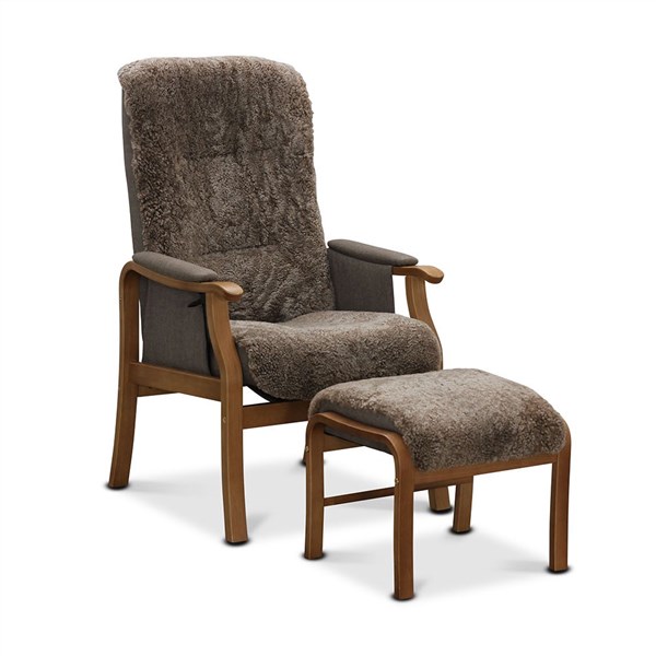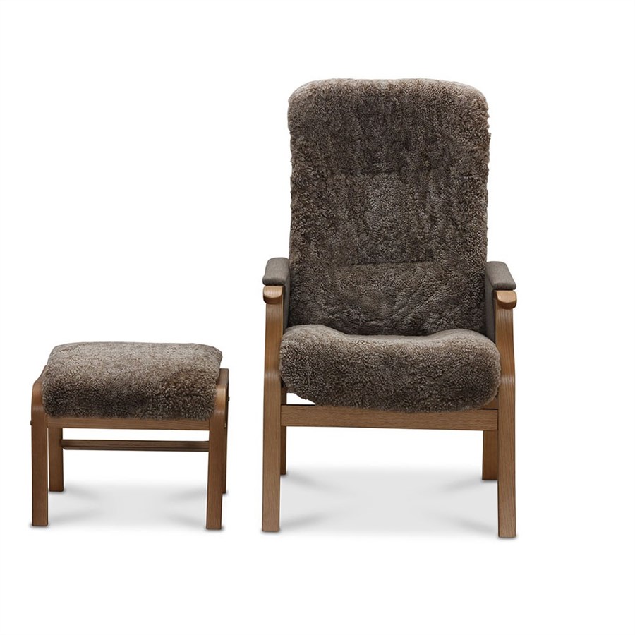 Bergen manuell fåtölj med pall fårskinn sahara/ek