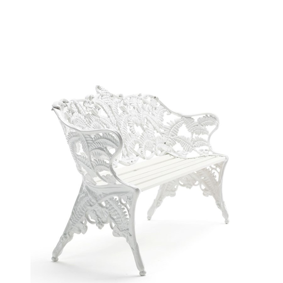 Soffa i impregnerad vitlackerad fur, grönlackerad fur eller oljad mahogny i svartlackerad, vitlackerad eller natur gjutgodsutförande. Priset är ett frånpris.