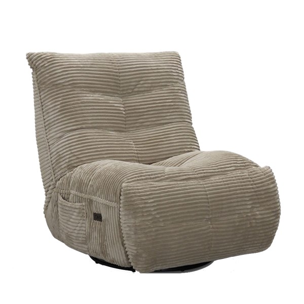 Dakota är en elektrisk reclinerfåtölj med snurr och gung. När rygg och fotstöd fälls, låser sig gungfunktionen automatiskt.