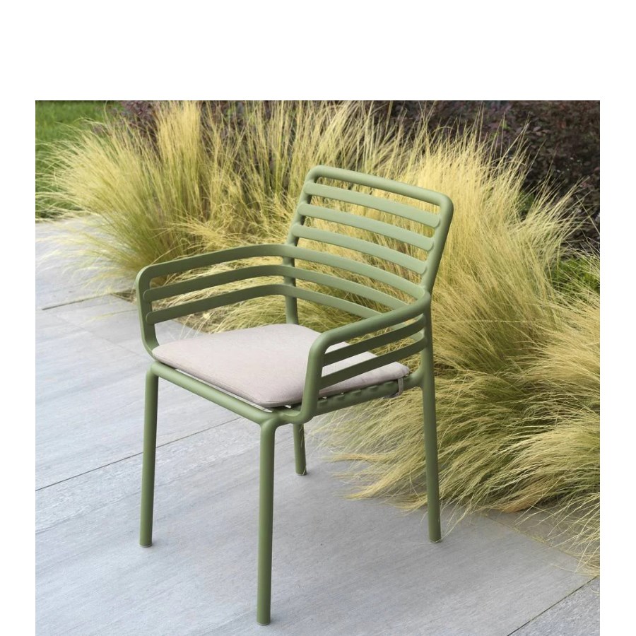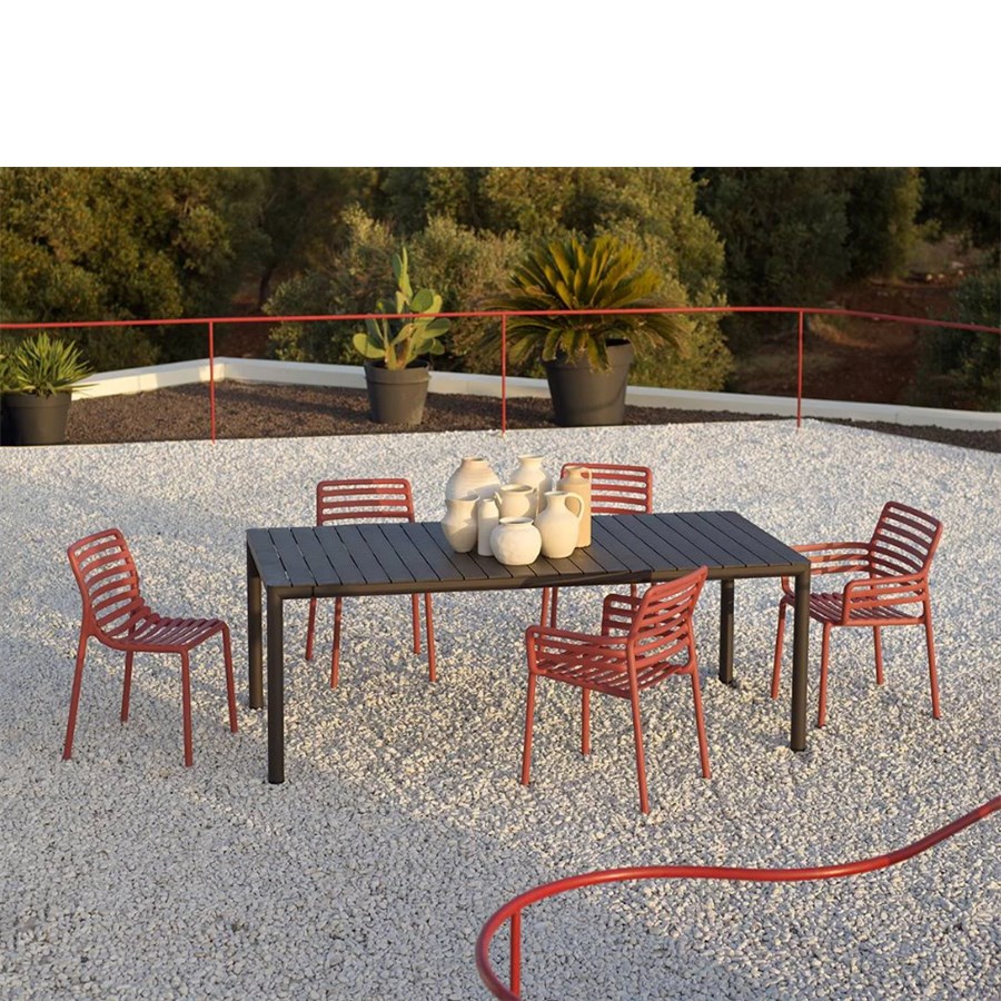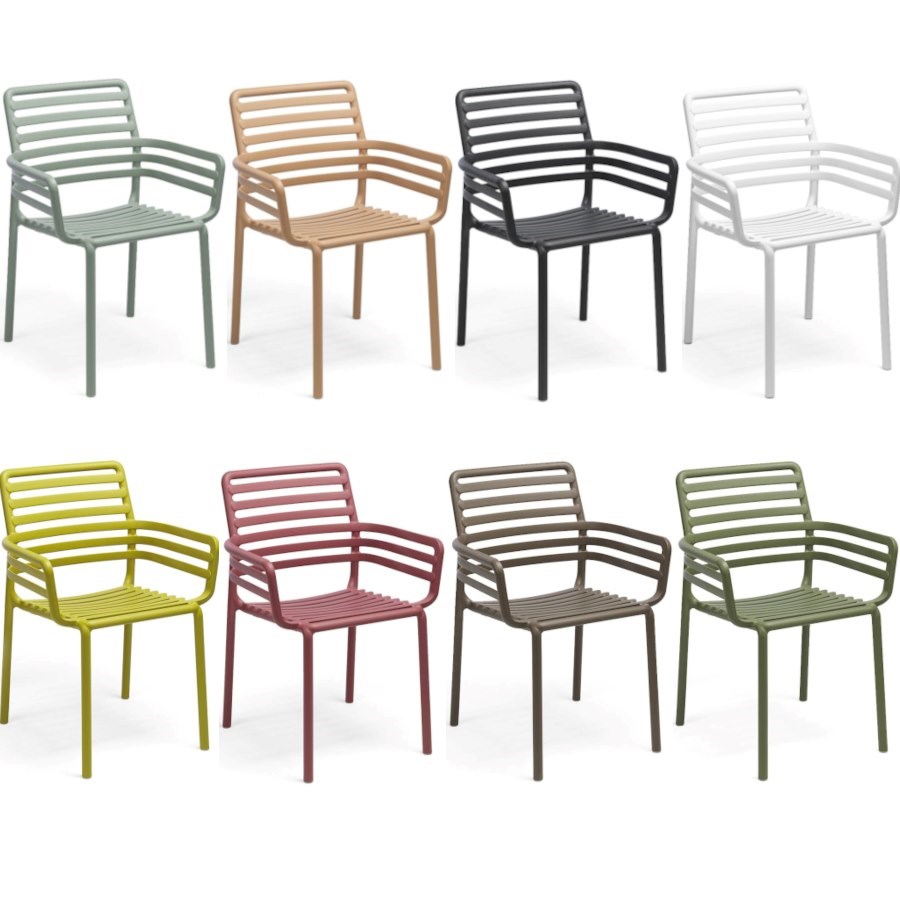Stapelbara stolen Doga från Italienska Nardi. Finns i olika färger och även utan karm. Stolen är formgjuten i fiberglasförstärkt polypropen. Går att ha både utomhus och inomhus.